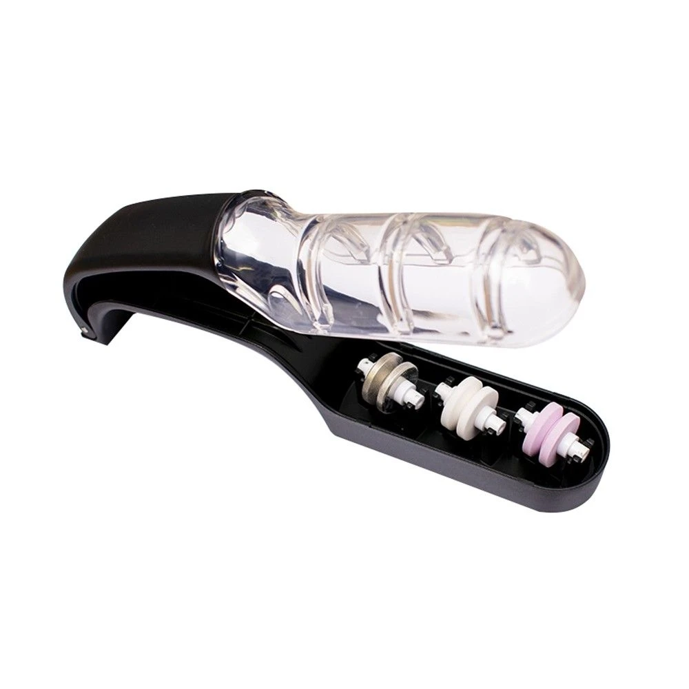 - Open the plastic cover and rinse in hot water. Let the sharpener air dry after use.