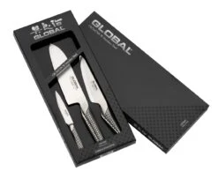 This Global G46338 – 3 Piece Kitchen Knife Set contains 3 ultra-sharp kitchen knives all with Acute 15 degree cutting edges, that are handwash only and made in Japan and able to handle a wide variety of cooking tasks, such as slicing and cutting tougher cuts of meat, fish and vegetables with complete ease and precision.