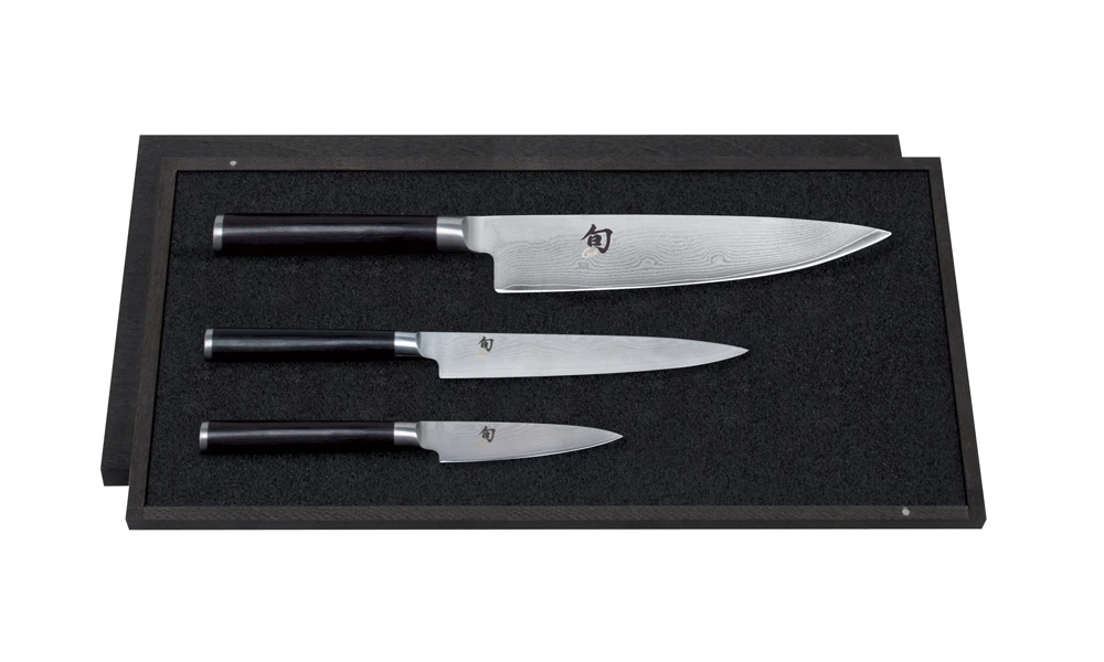 You get a perfect, straight cut thanks to the extremely precise processing of the edge with this Kai Shun Knife Set – 8.5cm Office Knife, 15cm Utility Knife, 20cm Chefs Knife.