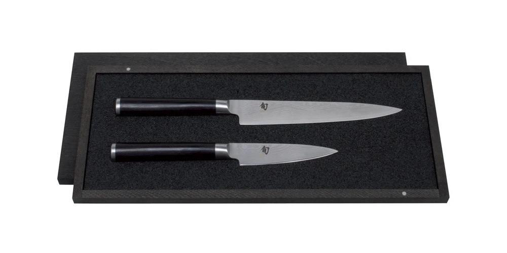 You get a perfect, straight cut thanks to the extremely precise processing of the edge with this Kai Shun Knife Set (KAI-DMS-210) – 8.5cm Office Knife & 15cm Utility Knife.