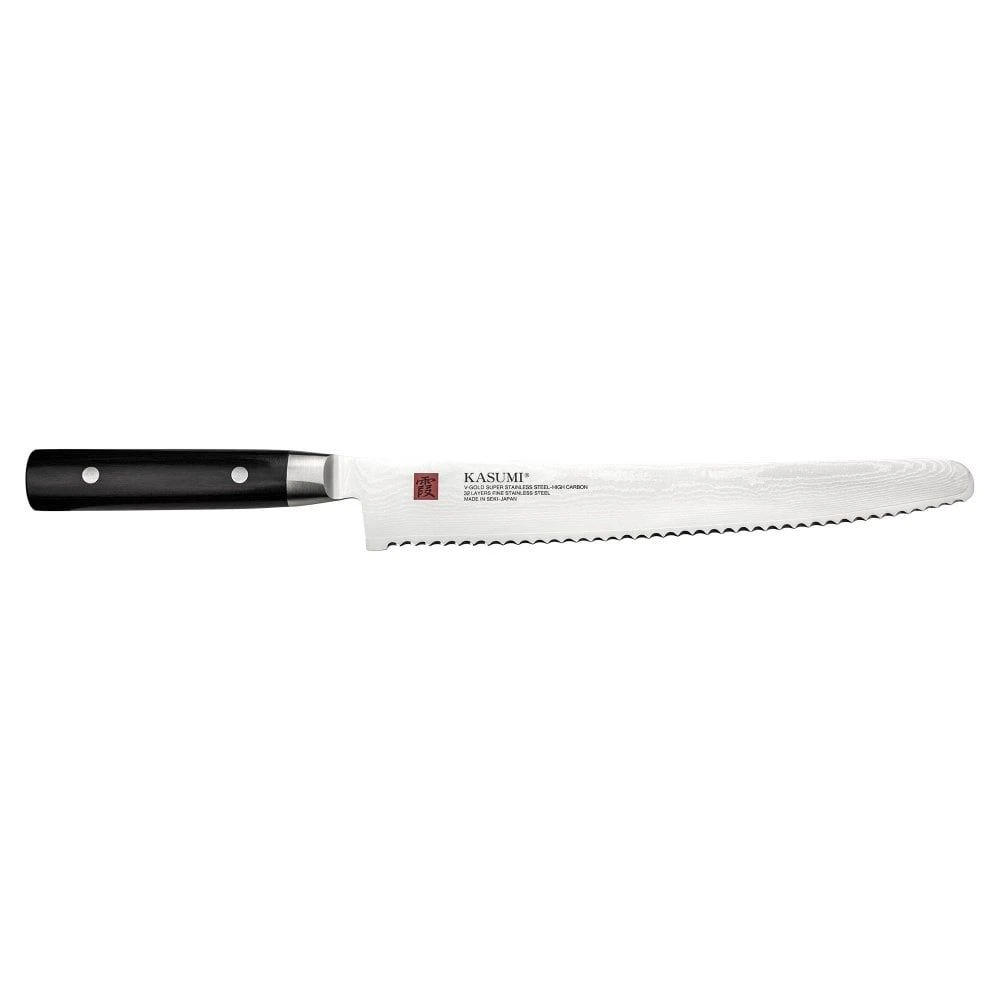 The Kasumi Damascus 25cm Bread Knife is a fusion of Japanese craftsmanship and modern design. This knife makes the perfect addition to any kitchen where a lot of cooking takes place, or even as a thoughtful gift for an aspiring chef in your life. The Kasumi Damascus 25cm Bread Knife is especially good for cutting and slicing bread, rolls and pastries of various sizes.