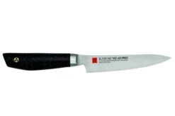 The Kasumi VG-10 PRO Series 12cm Utility Knife is a fusion of Japanese craftsmanship and modern design. This knife makes the perfect addition to any kitchen where a lot of cooking takes place, or even as a thoughtful gift for an aspiring chef in your life since it has everything you need to handle any kind of daily task, such as chopping, dicing, and slicing meat, fish, fruit and vegetables of various sizes.