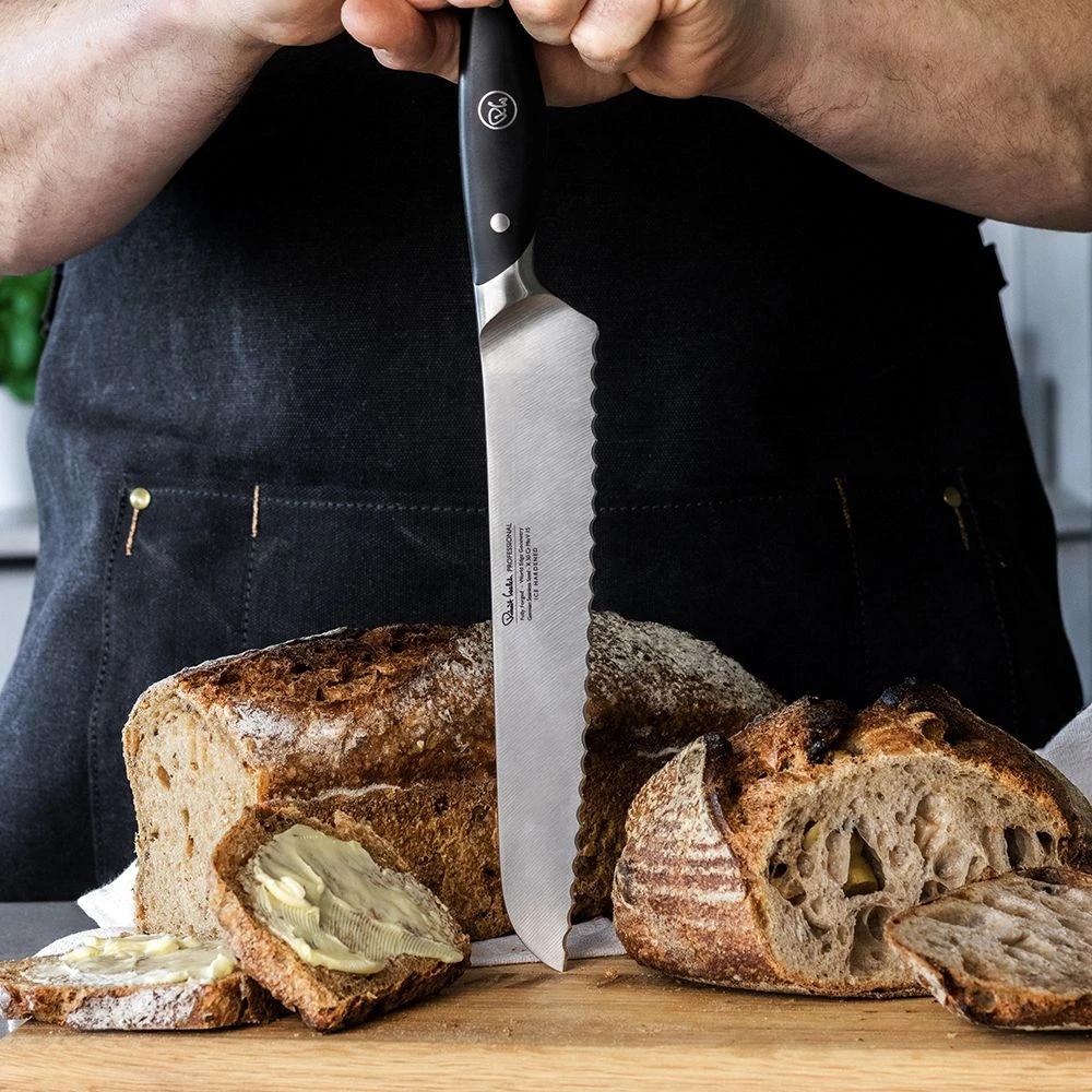 The Professional 22cm/8.5″” bread knife features a pointed tip and serrated blade, which will easily cut through crusty bread, sourdough loaves, and French sticks without squashing or tearing the soft crumb inside. A must have for any bread lover! Also ideal for slicing sandwiches and cakes.