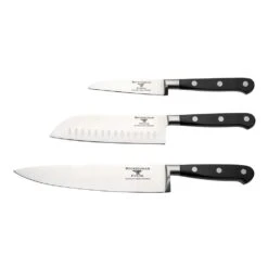 The Rockingham Forge Pro Black Series 9cm Paring Knife, 13cm Santoku Knife and 20cm Chefs Knife are part of the Classic X30 range which brings classic tradition to the modern kitchen. The timeliness styling and high quality X30 steel combine for a contemporary classic knife range.