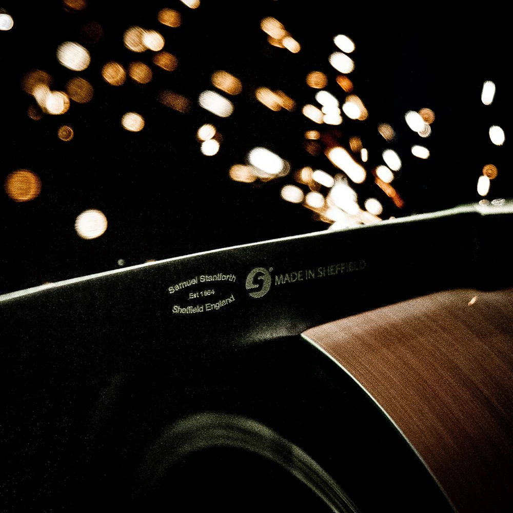 Samuel Staniforth ‘Chef’ range knives boast a traditional style of Sheffield knives which includes the fully forged blade, forged by hand, also brass rivets are secured by hand which will permanently secure the handle to the tang. The chef range, features a round bolster which counter balances the knife to ensure it can be the perfect ally in the kitchen.