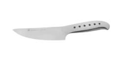 The Tojiro Sharaku Mono 21cm Carving Knife (FJ-21) is part of the Sha Ra Ku Mono range which has a distinctive angular pattern, to call back to the traditional Samurai sword, whilst the black dot motif in the handle represents a row of urban windows. A carving knife is used to slice thin cuts of meat such as poultry, roasts, hams and other large cooked meats. The blade is thinner than a chef’s knife for more precise slices of meat.
