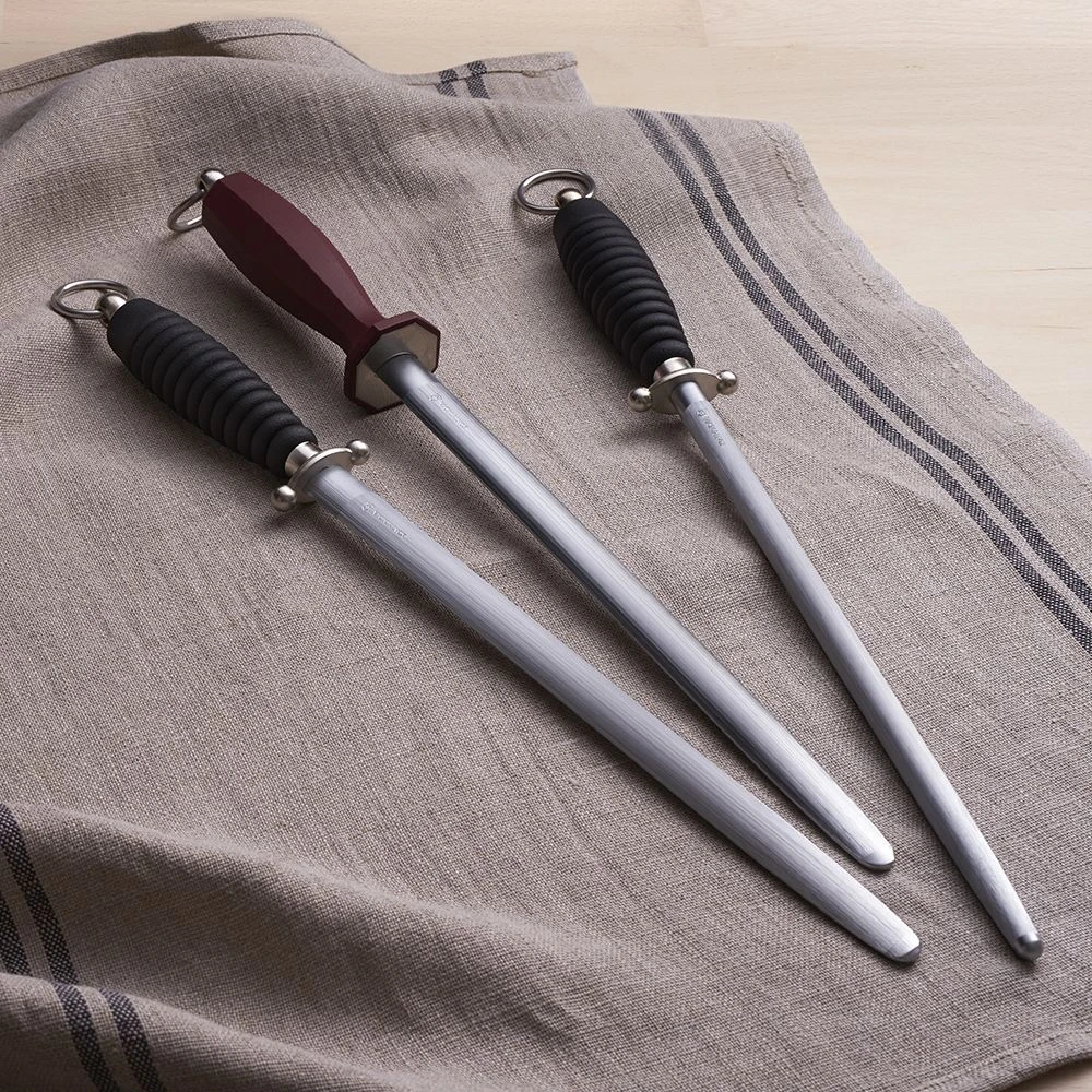 Due to an extremely fine cut, the sharpened edge is smoother whilst material removal. This leads to a long preservation of a very sharp edge. Professionals and budding chefs alike swear by sharpening steels. All models have an extremely hard-wearing coating, good grip and very good sharpening properties. For everyday household use, on the other hand, we recommend the knife sharpeners. Thanks to their ingenious design, they are safe and easy to use.