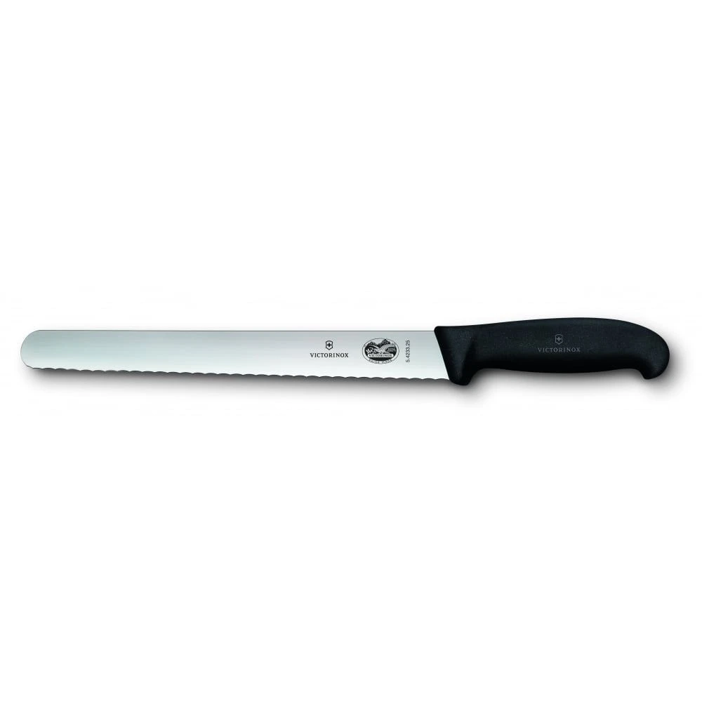 The Fibrox range includes a long list of knives for all your kitchen needs. The round tip on the Fibrox 25cm Slicing Knife Serrated Edge Round Tip is perfect for cutting meat, fish or any other food item, including bread.