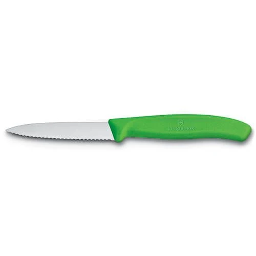 The Classic range includes a long list of knives for all your kitchen needs. range includes a long list of knives for all your kitchen needs.The ultra-sharp serrated blade on the Victorinox Swiss Classic 2x 8cm Paring Knife with Point Serrated Green is is perfect for cutting a wide variety of foods and really is a perfect all-rounder knife.