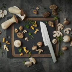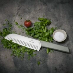 - Swiss made Santoku knife with fluted edge