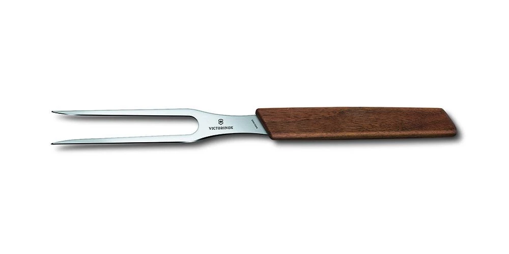 Carving Fork with Walnut Wood Handle. Where true beauty meets true quality: meet our Swiss Modern Carving Fork. Just like each piece in its collection, it’s been ergonomically honed for ultimate comfort.