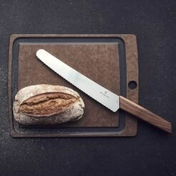 Bread and Pastry Knife with Walnut Wood Handle. Baked goods are easily sliced and portioned with the Swiss Modern Bread and Pastry Knife. It also makes light work of tougher, hard-skinned vegetables such as artichokes.