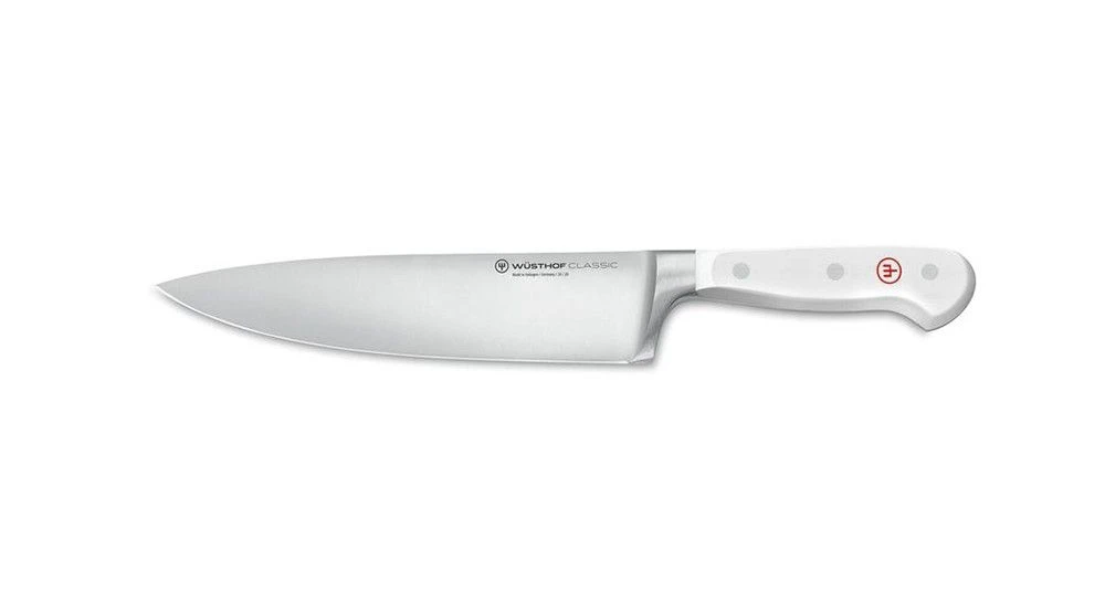 The Wusthof Classic White 20cm Cook’s Knife with its white handle gives your kitchen a unique visual touch. With refined simplicity and impressive elegance, these timeless knives offer everything you need for preparing and plating fresh food. The bright, white handles are colour resistant, staying clean and fresh for years to come – a new classic!