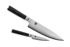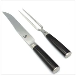 The Wusthof Empty Knife Block has room for a sharpening steel, a straight blade carving fork, a pair of scissors, 3 large knives (eg cooks knives), 3 medium knives(eg a bread knife and a carving knife), and 3 small paring or tomato knives.
