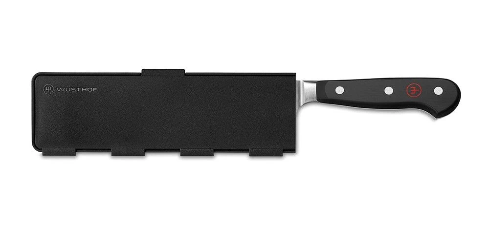 Knives dull over time, not only through use but also through inappropriate storage. The magnetic WÜSTHOF Blade Guard ensures safe storage of your knives, protecting them from scuffs and damage. This hinged blade protector is easy to open and is magnetised which allows for secure closure.