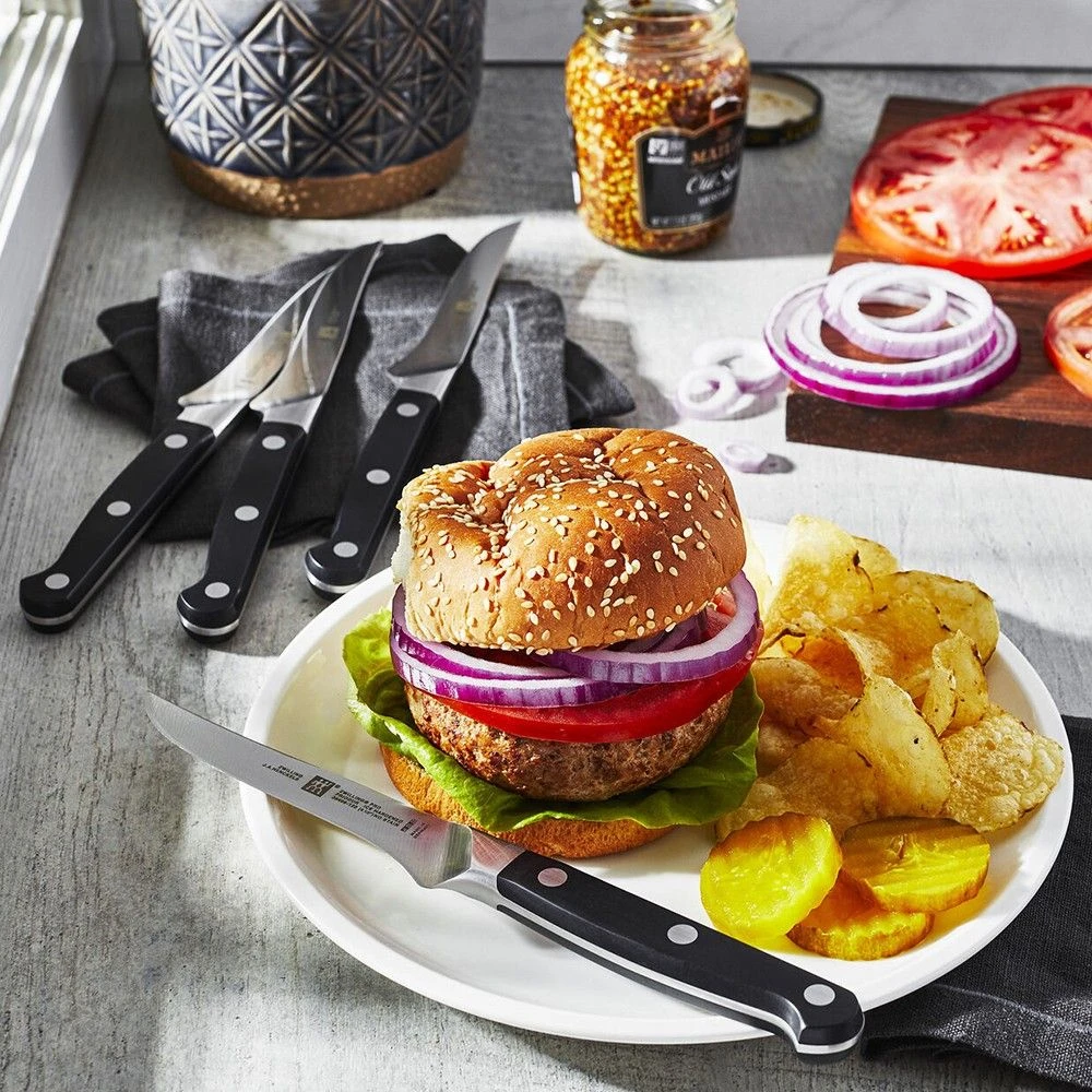 The Zwilling Pro 4 Piece Steak Set is perfect for the serious chef who appreciates sharp knives with a precision edge. Whether you’re cutting into a juicy steak or simply need to cut other meats or vegetables, these knives will get the job done each time.