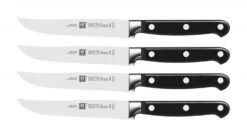 Hearty steaks are always a special treat. When fried, the meat takes on a golden brown crispness, which has an intense flavour. Inside, however, the meat is very juicy. With the steak set from the professional “S” range you will be able to faithfully recreate this recipe. The set consists of four steak knives, which complement this meal when you set the table. The blade is designed to cut steaks or other fried meat. You and your guests can easily cut the food into bite-size pieces. In addition, the steak knife is aesthetically pleasing, and will hold its own even on a festive table.